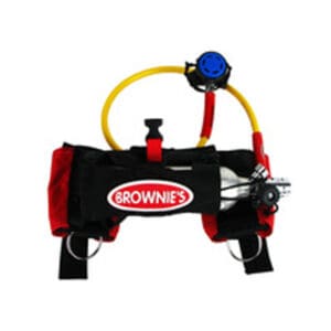 Brownie’s THIRD LUNG™ has chosen a unique tank valve / 1st stage combination that creates a lower profile on the tank and in the water.