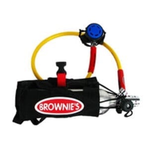 Brownie’s THIRD LUNG™ has chosen a unique tank valve / 1st stage combination that creates a lower profile on the tank and in the water.